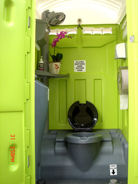 Toilet paper holder, toilet bowl, coat hook, flushing system (foot pump), hand wash station, closed tank, door mirror, soap dispenser, flower decoration, fan, male & female sticker is available